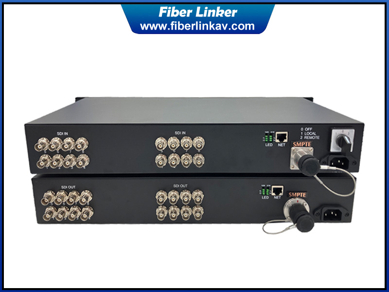 This 3G-SDI fiber optic extender has LEMO compatible 3K.93C SMPTE311M/SMPTE304M connector. It could use FUW-PUW assembly HDTV hybrid fiber cable to transmit 16 channels of SDI camera signal and Ethernet network to remote area like OB VA. This SMPTE fiber converter could be up to 2KM over SMPTE cable and 20KM over PUW/PUW to LC/SC/ST/FC pure fiber optic cable. Our